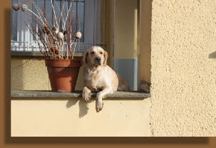 Heute sind im Aktiv- und Ausbildungsstall Azmannsdorf neben Pferden unterschiedlichster Art und Rasse auch die aufmerksame Golden Retriever-Hündin Jalina und etliche jagdfreudige Katzen zuhause.